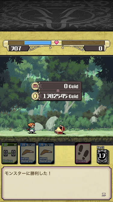 戦略性といえば「物理中心で攻めるか」「魔法中心で攻めるか」くらいで、あとはとにかくお金を貯めてひたすらに強化していくだけ。。。